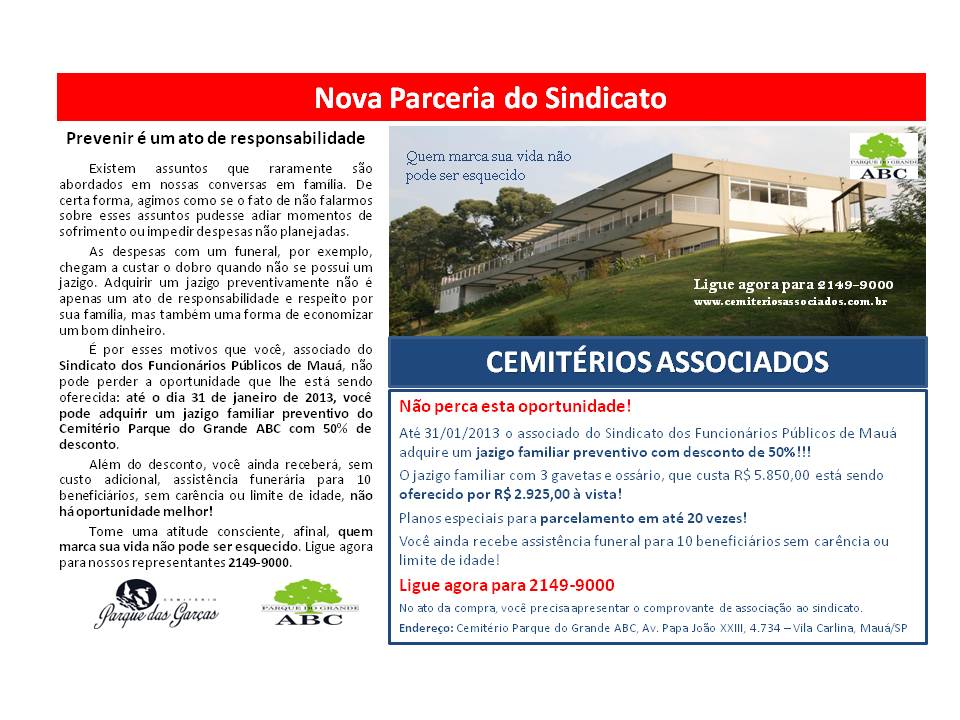 O Sindicato em parceria com cemitérios associados traz mais um benefício!!