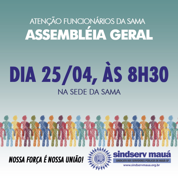 CONVOCACAO-ASSEMBLEIA-SAMA Publicado 24/04/2018 at 600 × 600 in Sindicato convoca funcionários do Sama para assembleia nesta quarta-feira (25) ← Anterior