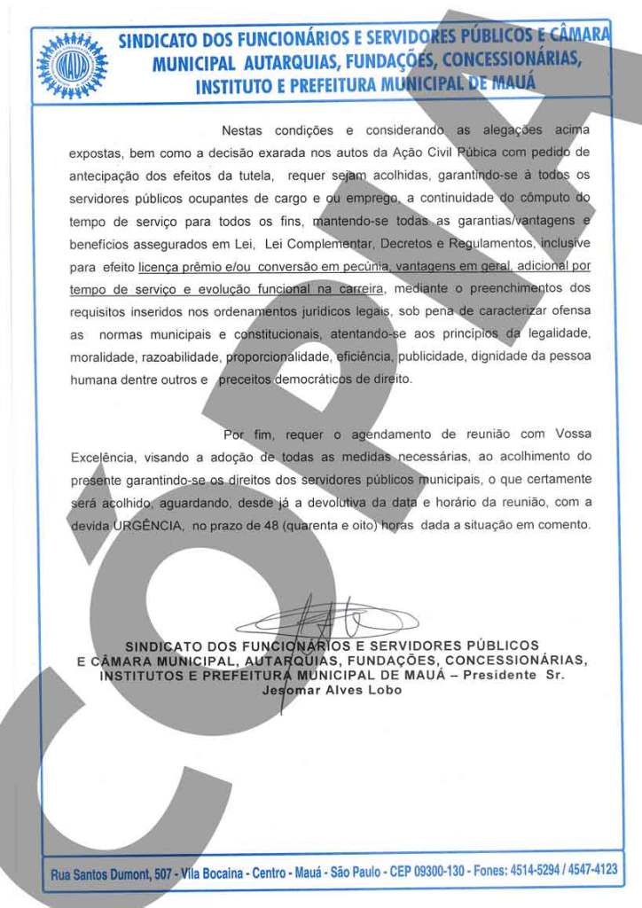 Alguns servidores relataram ao Sindicato que o departamento de recursos humanos da Prefeitura de Mauá teria adotado a prática de avisar informalmente aos funcionários que a contagem de tempo para quinquênio e licença-prêmio estão interrompidos.