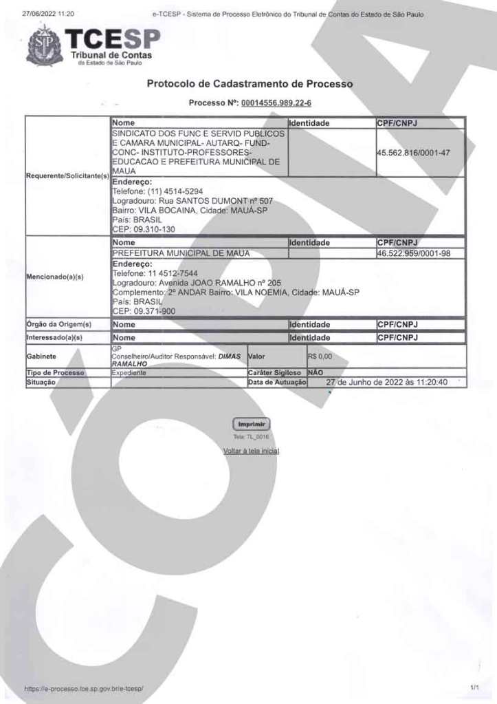 Segundo o presidente do Sindserv, Jesomar Alves Lobo, o Sindicato pediu ao presidente do TCE-SP, Dr. Dimas Ramalho, que acompanhe pessoalmente o andamento do processo dentro do órgão. “Solicitamos que [Dr. Dimas Ramalho] acompanhe pessoalmente esse processo com a ciência de que cerca de 10 mil vidas estão aguardando seu desfecho, queremos que toda a legalidade e direito das partes sejam respeitadas mas o tempo é primordial para quem aguarda atendimento médico”, pontuou.