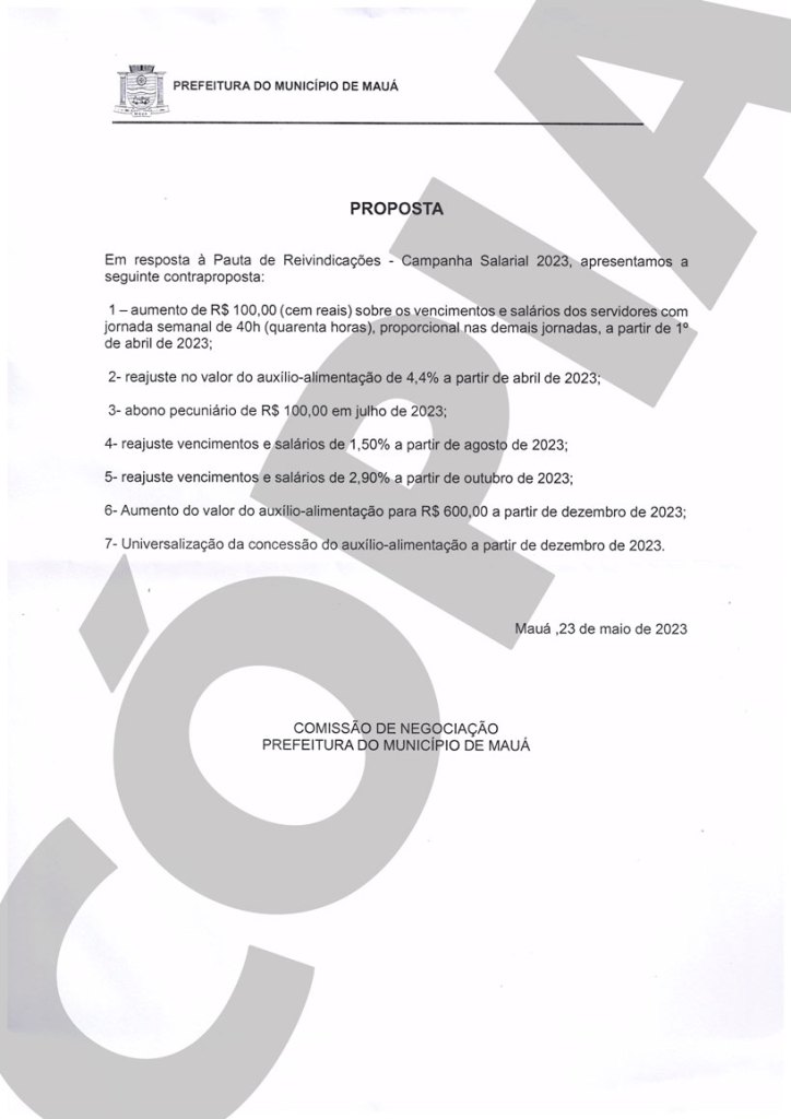 Veja abaixo a contraproposta da Prefeitura de Mauá aos servidores públicos: