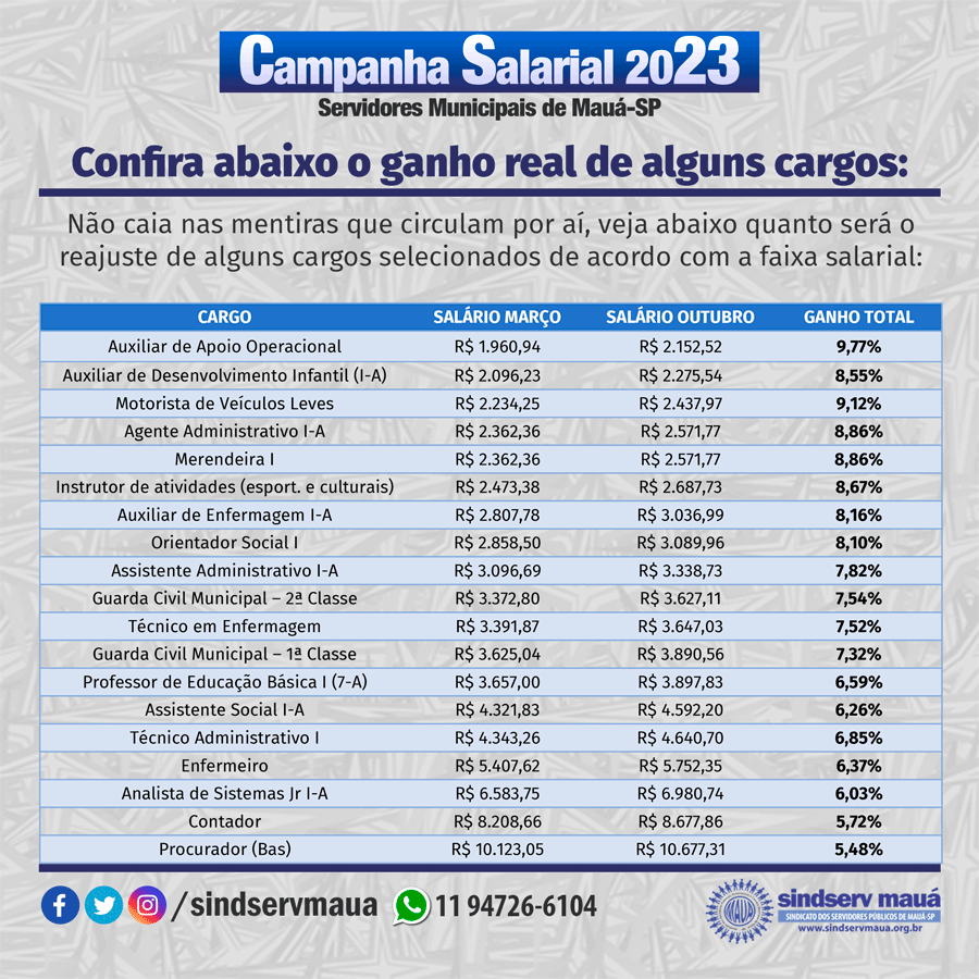 Reveja a Campanha Salarial 2023 nessa página: https://sindservmaua.org.br/campanha-salarial-2023/