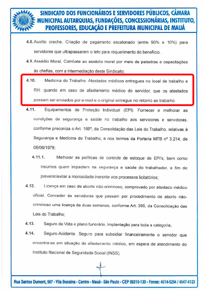 Mais um item da pauta de reivindicações do Sindicato dos Servidores e Funcionários Públicos (Sindserv) para a Campanha Salarial 2024 foi atendido pela Prefeitura de Mauá. A partir desta segunda-feira (3), os atestados médicos poderão ser encaminhados de forma online, por meio do Portal do Servidor.