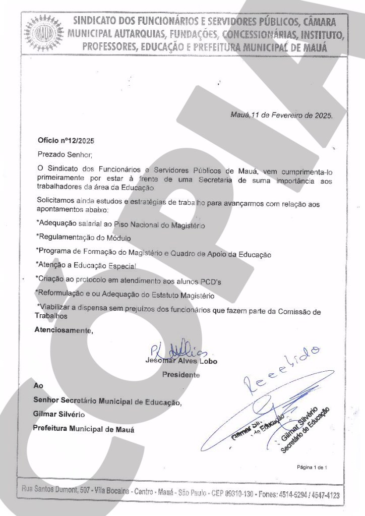 A pauta de reivindicações dos servidores e educadores foram apresentados por diretores do Sindicato dos Servidores e Funcionários Públicos (Sindserv) de Mauá em reunião com o secretário de Educação, Gilmar Silverio, realizada na última terça-feira (11), na sede da Secretaria.