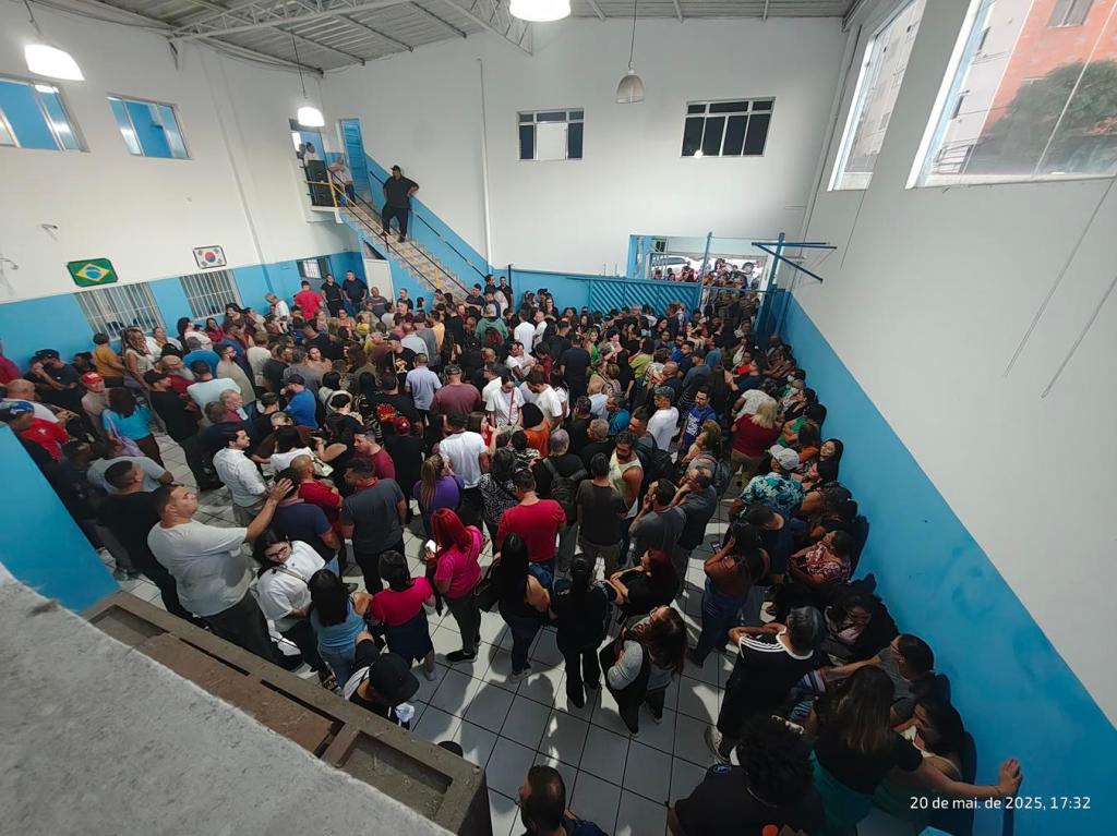 Convocada para as 17h30 (1ª chamada) e 18h (2ª chamada), a assembleia rapidamente superou a capacidade do auditório da sede do Sindserv. Diante da expressiva participação e com o apoio das autoridades competentes, a rua em frente foi temporariamente interditada para garantir a continuidade da reunião com segurança e condições adequadas para todos os presentes.
