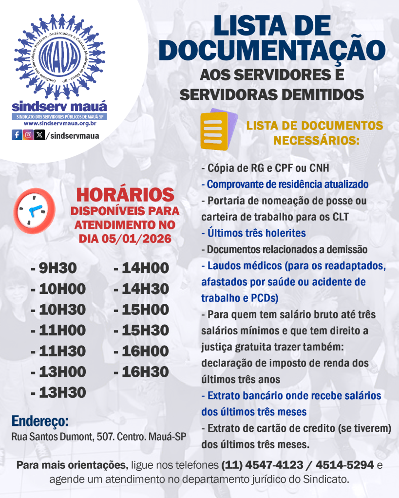 Para mais orientações, ligue nos telefones (11) 4547-4123 / 4514-5294 e agende um atendimento no departamento jurídico do Sindicato.
