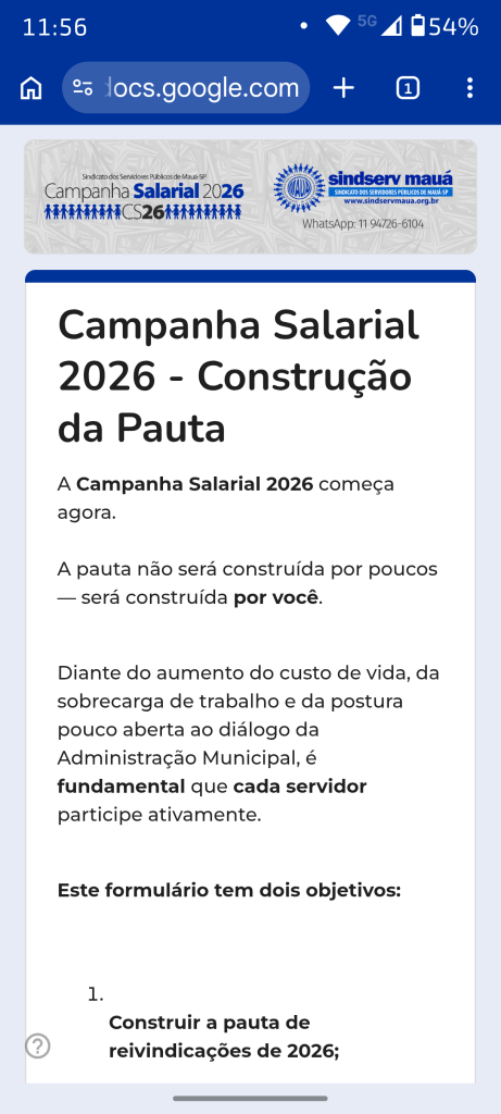 Ao final do período de coleta, o Sindserv Mauá irá sistematizar as contribuições e apresentar à categoria os próximos passos da Campanha Salarial 2026.