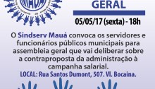 Em reunião com diretores do Sindicato dos Servidores Públicos (Sindserv) de Mauá, nesta quinta-feira (4), no Paço municipal, o prefeito Atila Jacomussi reconsiderou sua contraproposta e decidiu que os itens negociados na campanha salarial sejam pagos a partir de abril, retroativamente. Os trabalhadores se reunirão em assembleia nesta sexta-feira (5) para deliberar sobre o assunto.…